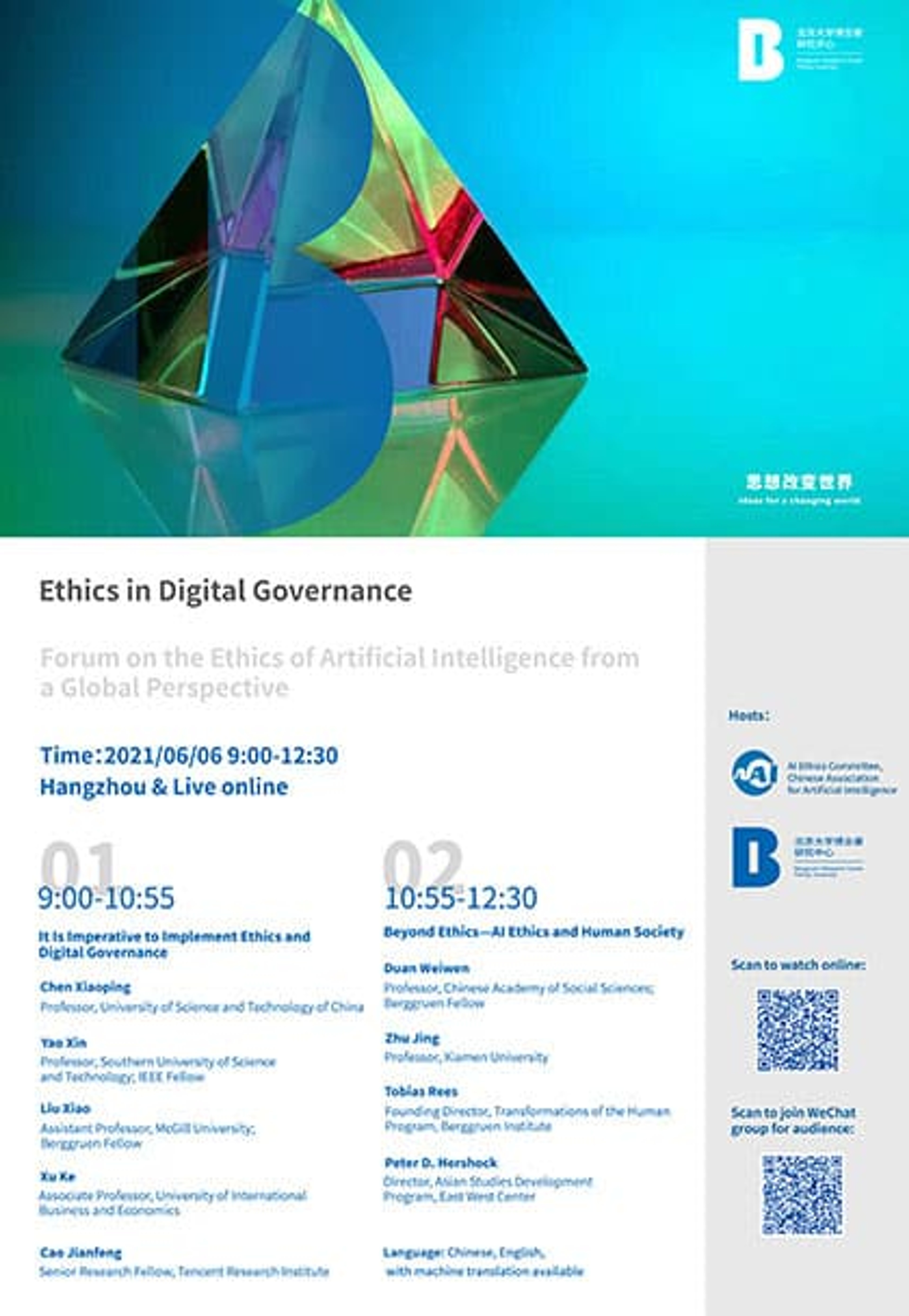 To address these and other questions, on June 6, the AI Ethics Committee of the Chinese Association for Artificial Intelligence and the Berggruen Research Center at Peking University hosted the third annual “Ethics in Digital Governance: Forum on the Ethics of Artificial Intelligence from a Global Perspective” in Hangzhou as part of the “Global Artificial Intelligence Technology Conference.”